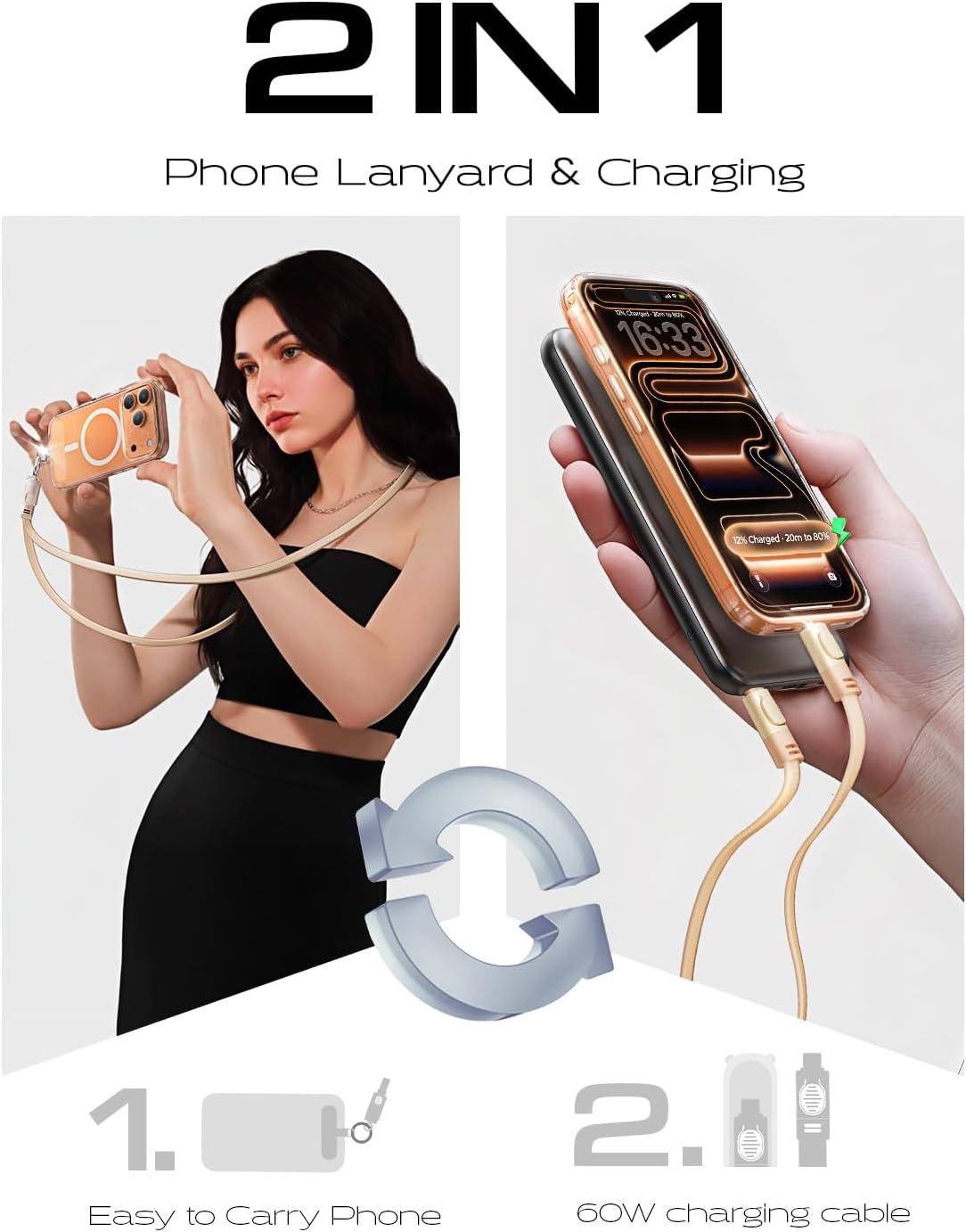 【 WEAR. CHARGE. NEVER WORRY.】LISEN 2-in-1 crossbody lanyard teacher is a drop-proof and anti-theft phone companion for your outdoor activities (such as hiking, traveling, walking, attending the fair, shopping, biking, or walking your dog). It also switches to 60W USB C TO USB C cable to save your phone's battery when you have been outdoor activities all day.