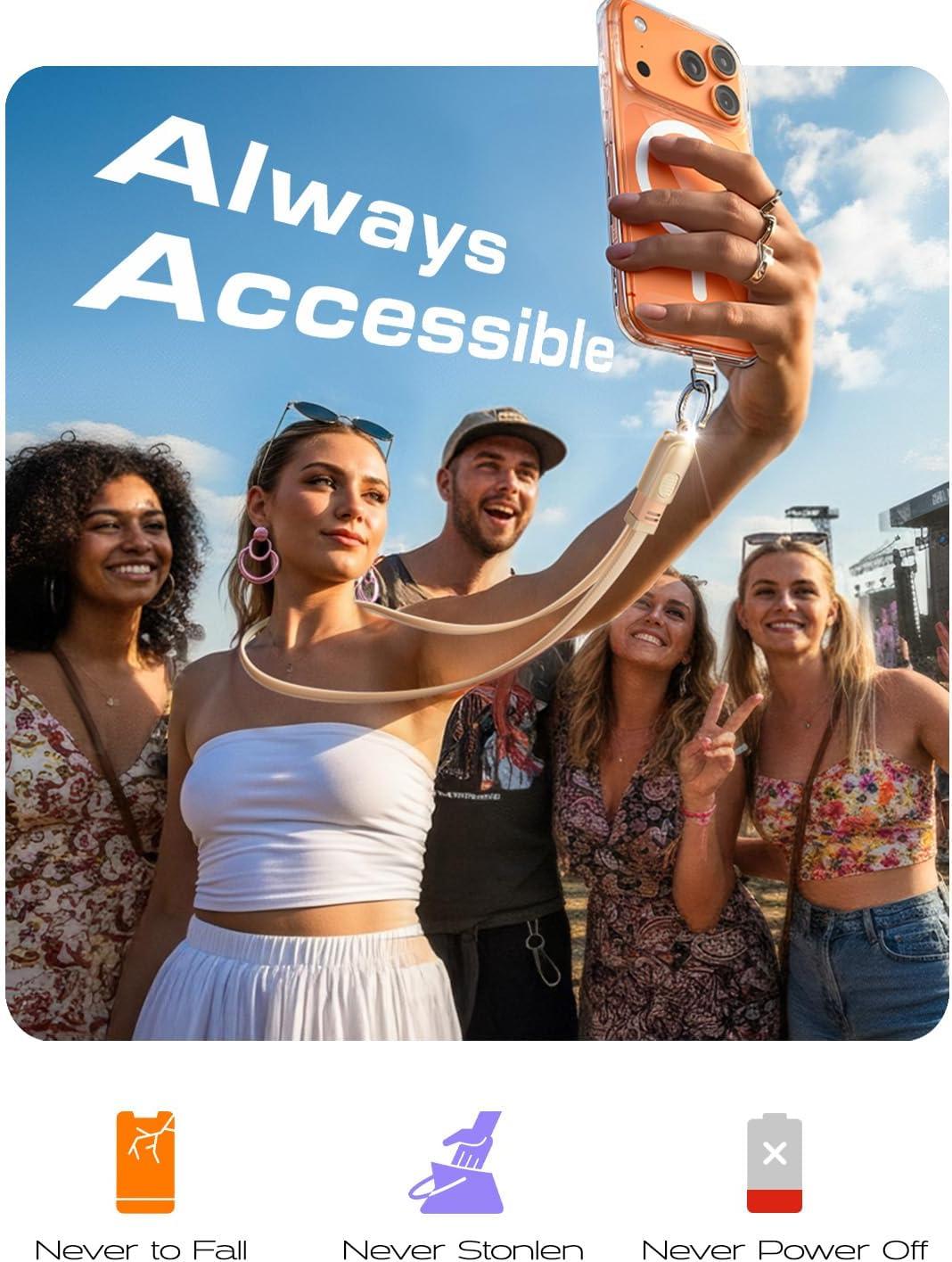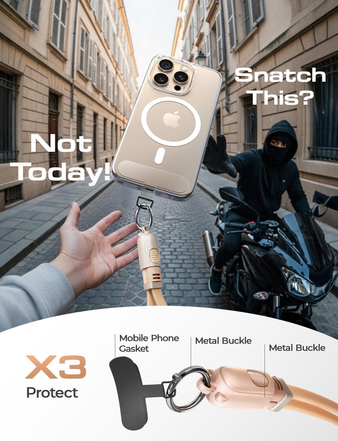 【ADVENTURE READY. PHONE SAFE.】Engineered for extreme adventures, our lanyard features a silicone-sheathed braided core surviving 5,000+ tensile tests—virtually unbreakable. High-pressure T-pads distribute impact forces, while the military-standard metal construction withstands swings and shocks, eliminating accidental detachments during thrashing movements. Wherever your adrenaline takes you, your phone remains fortress-safe.