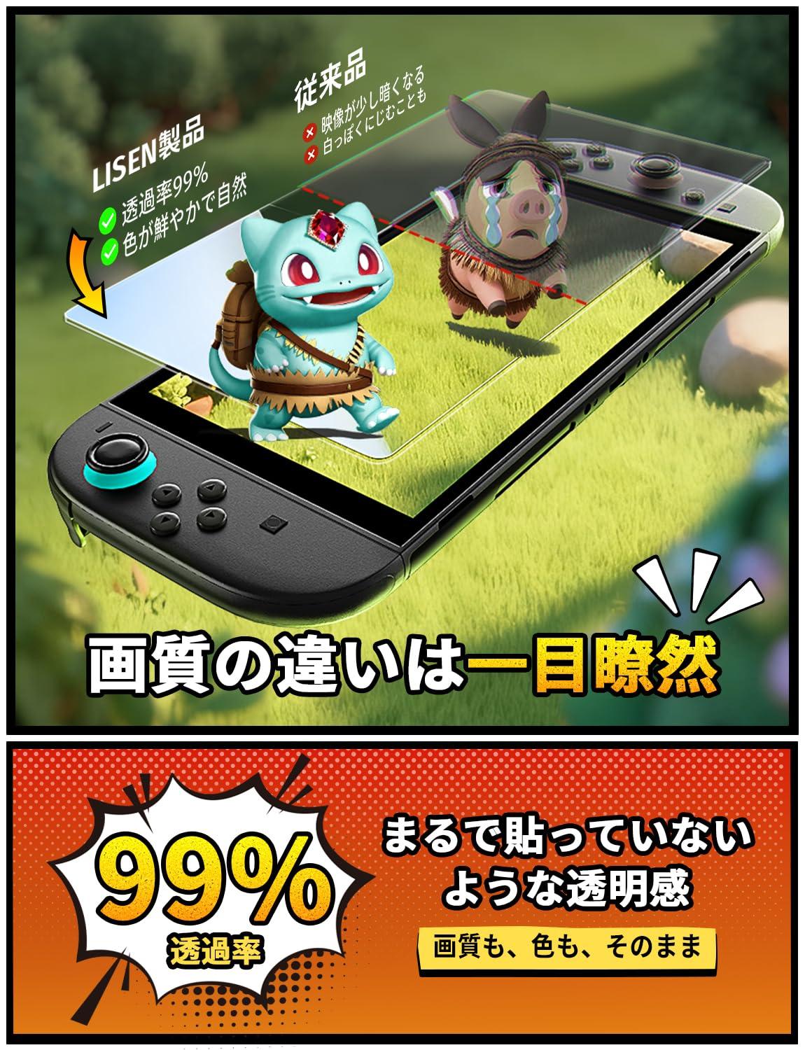 【True Full-Screen Fit, No Black Borders】With edge-to-edge transparency, the LISEN screen protector preserves the full original look of your Switch 2. No visual obstruction — just smooth, full-screen protection.